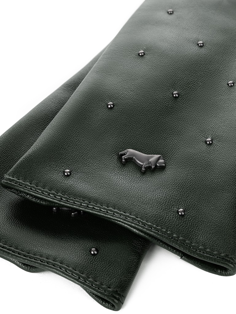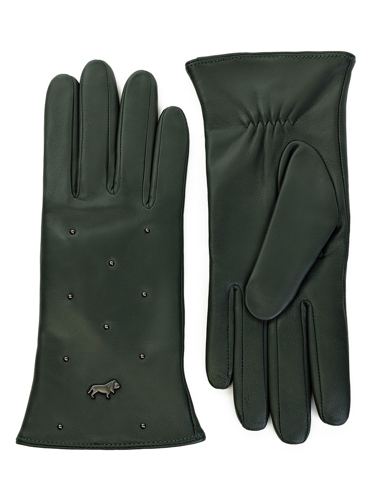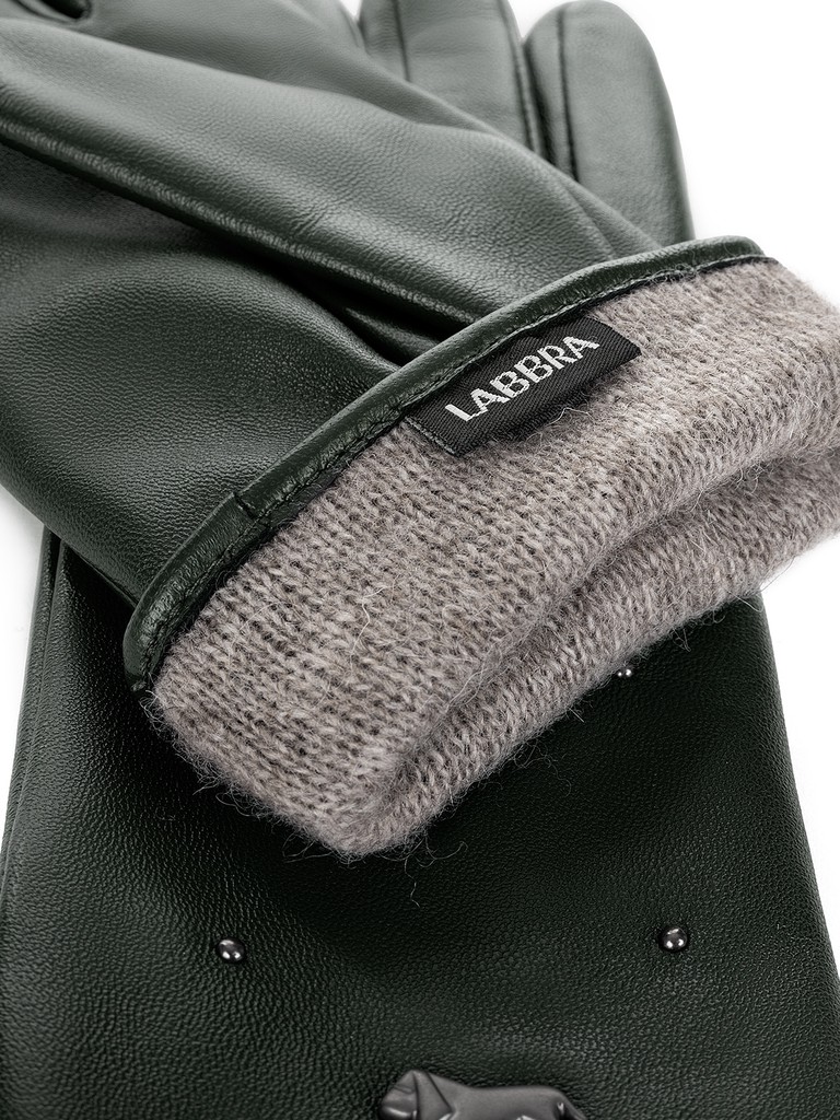 Перчатки женские торговой марки LABBRA из натуральной кожи ягненка. Производитель Китай. Подкладка: 70% шерсть, 30% акрил. Отделка - металлические хольнитены на лицевой части и фирменная фурнитура LABBRA. Длина манжеты от нижней точки большого пальца до края перчаток - 5,5 см. Длина пальцев - средняя.