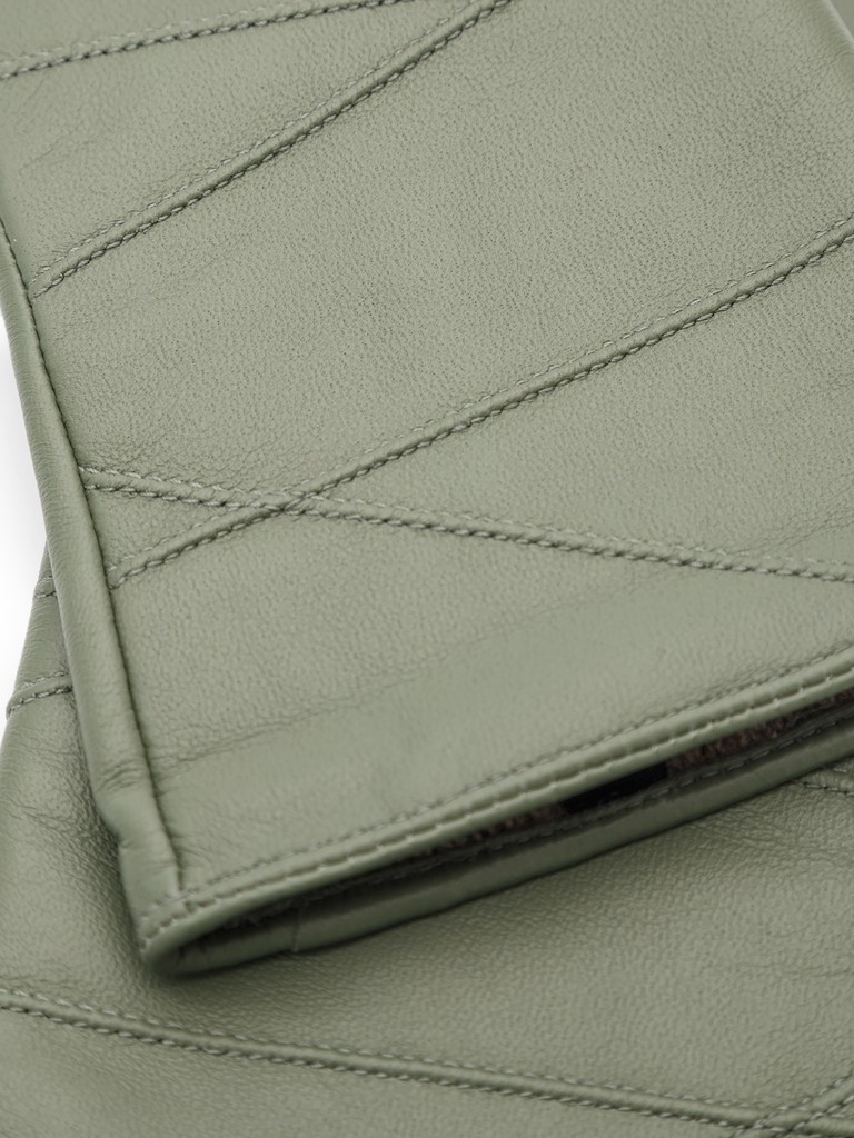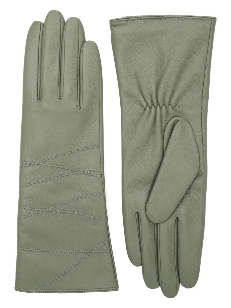 Перчатки женские торговой марки LABBRA производства Китай. Выполнены из натуральной кожи ягненка. Подкладка - 70% шерсть, 30% акрил. Отделка - декоративные геометричные строчки машинными швами на лицевой стороне. Длина манжеты от нижней точки большого пальца до края перчаток - 10 см. Длина пальцев - средняя.