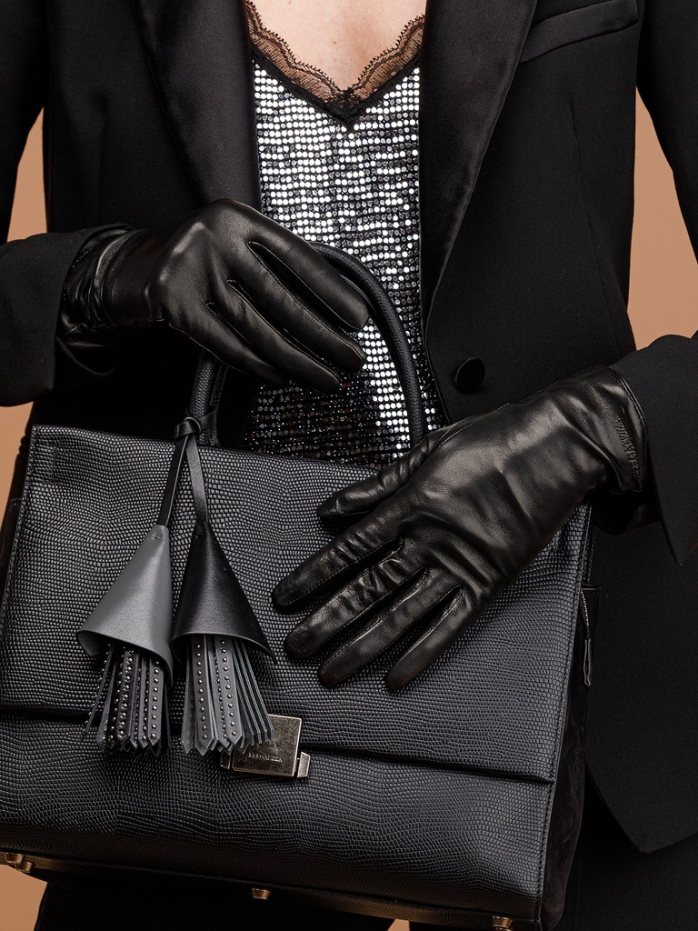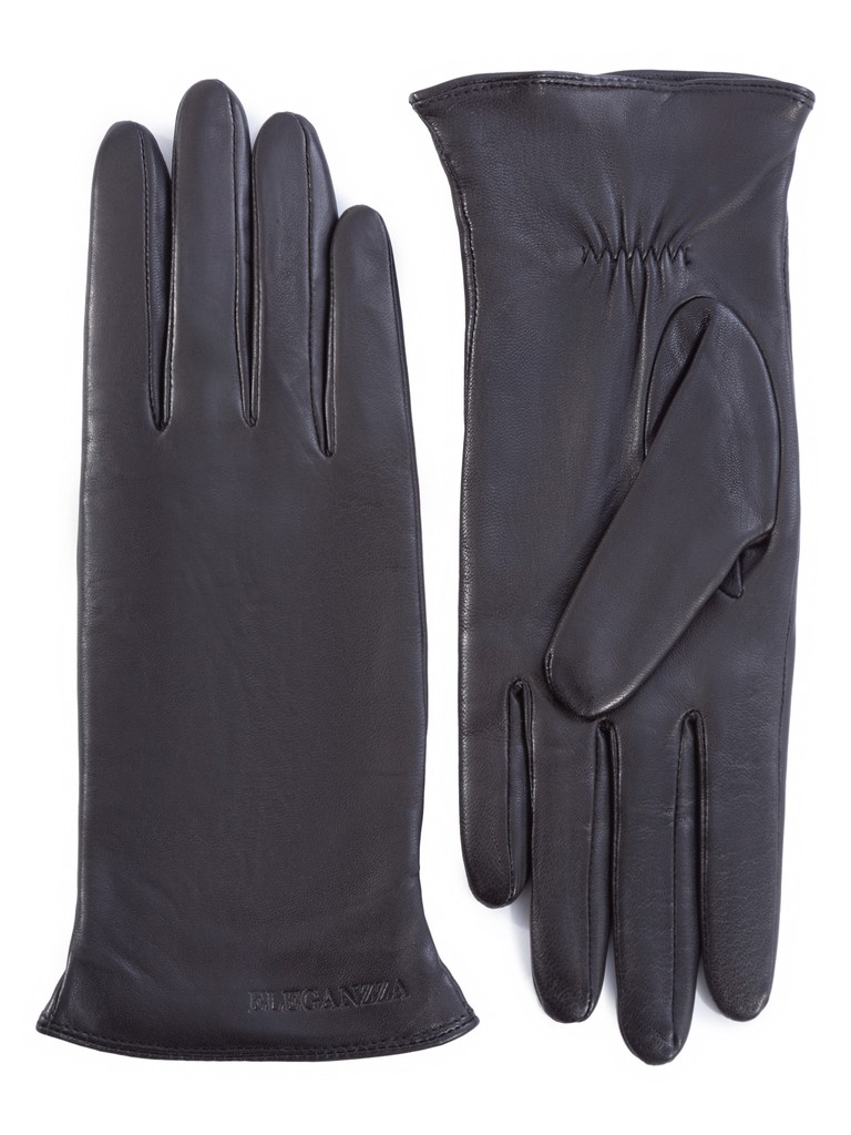 Перчатки женские торговой марки ELEGANZZA из натуральной кожи ягненка производства Италии. Подкладка: 100% шерсть. В углу перчатки со стороны мизинца фирменный "штамп" ELEGANZZA. Длина манжеты от нижней точки большого пальца до края перчаток составляет - 5,5 см. Длина пальцев - средняя.