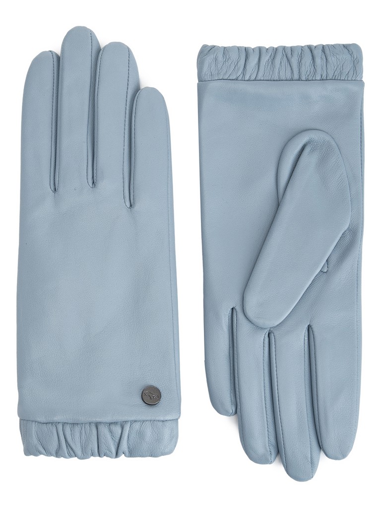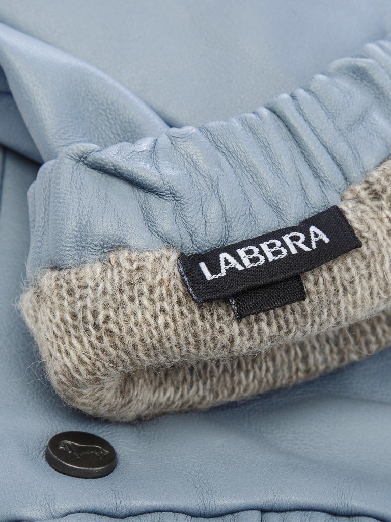 Перчатки женские торговой марки LABBRA из натуральной кожи ягненка. Производитель Китай. Подкладка: 70% шерсть, 30% акрил. Отделка - манжета собрана на плотную резинку, что обеспечивает идеальный обхват на запястье; фурнитура с фирменной символикой. Длина манжеты от нижней точки большого пальца до края перчаток - 3,5 см. Длина пальцев - средняя.