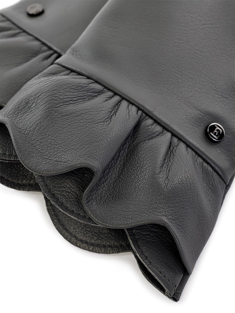 Перчатки торговой марки ELEGANZZA производства Китай выполнены из натуральной кожи ягненка. Подкладка: 70% шерсть + 30% кашемир. Отделка - декоративные лепестки из лоскутов кожи по манжету, а также фурнитура с фирменной символикой. Длина манжеты от нижней точки большого пальца до края перчаток - 5 см. Длина пальцев - укороченные.