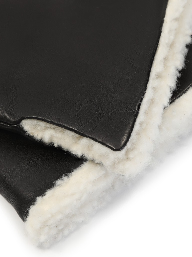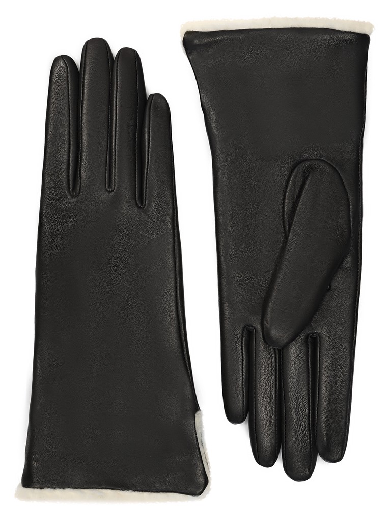 Перчатки торговой марки ELEGANZZA производства Китай выполнены из натуральной кожи ягнёнка. Подкладка: 100% шерсть. Боковой декоративный разрез манжеты и внутренняя часть отворота перчаток - отделка искуственным мехос бежевого цвета. Длина манжеты от нижней точки большого пальца до края перчаток - 6 см. Длина пальцев - средняя.