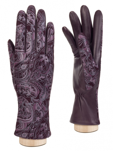 Перчатки торговой марки ELEGANZZA производства Китай выполнены из натуральной кожи ягненка. Подкладка: 100% шерсть. Отделка - декоративная отстрочка геометрической формы на лицевой части, украшенная хольнитенами. Длина манжеты от нижней точки большого пальца до края перчаток - 6 см. Длина пальцев - средняя.