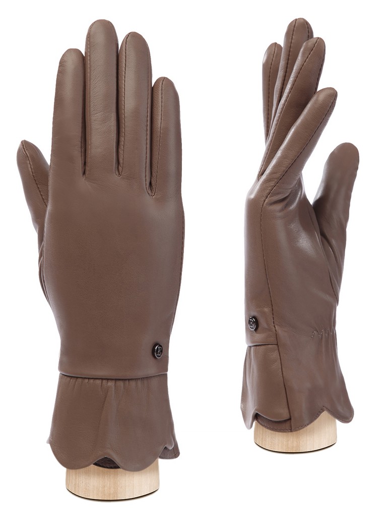 Перчатки торговой марки ELEGANZZA производства Китай выполнены из натуральной кожи ягненка. Подкладка: 70% шерсть + 30% кашемир. Отделка - декоративные лепестки из лоскутов кожи по манжету, а также фурнитура с фирменной символикой. Длина манжеты от нижней точки большого пальца до края перчаток - 5 см. Длина пальцев - укороченные.