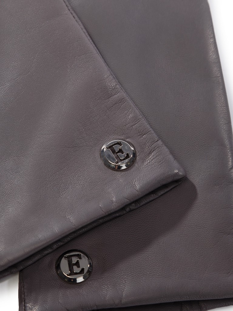 Перчатки торговой марки ELEGANZZA производства Италия выполнены из натуральной кожи ягненка. Подкладка: 85% шерсть, 15% кашемир. Отделка - фурнитура с фирменной символикой в углу перчатки. Длина манжеты от нижней точки большого пальца до края перчаток - 6 см. Длина пальцев - удлиненные.