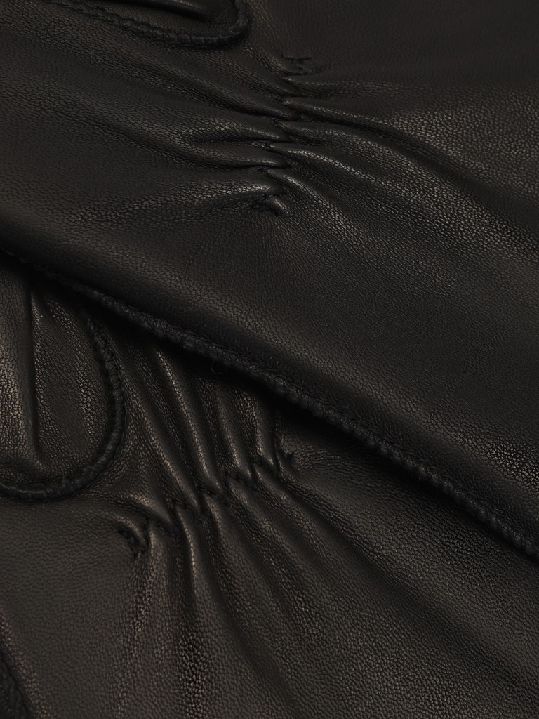 Перчатки женские торговой марки ELEGANZZA выполнены из натуральной кожи ягнёнка производства Италии. Подкладка: 85% шерсть, 15% кашемир. Перчатка выполнена с наружними машинными швами, что обеспечаивает максимальный комфорт внутри. Декоративные строчки "три луча" на лицевой стороне, фурнитура с фирменной символикой в углу перчатки. Длина манжеты от нижней точки большого пальца до края перчаток - 9,5 см. Длина пальцев - средняя.