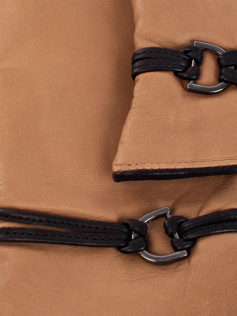 Перчатки торговой марки ELEGANZZA выполнены из натуральной кожи ягненка производства Италии. Подкладка: 85% шерсть, 15% кашемир. Отделка тонкими кожаными шнурками, закрепленными в шов и фурнитуру цвета никель. Длина манжеты от нижней точки большого пальца до края перчаток - 6 см. Длина пальцев - средняя.
