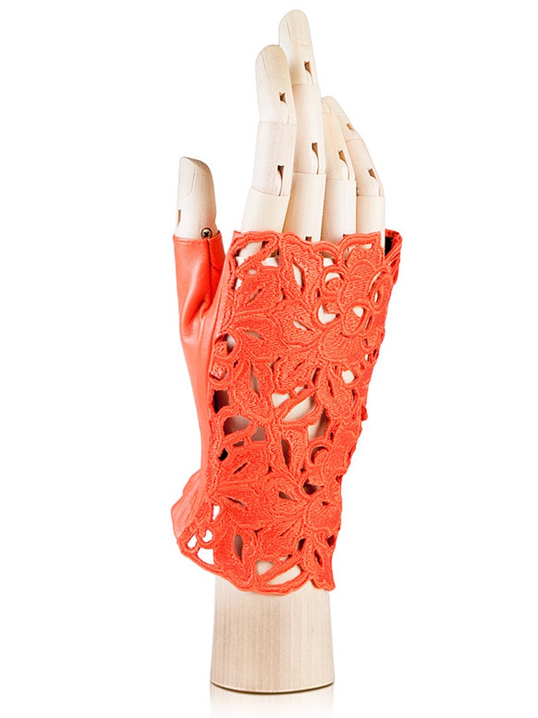 Митенки женские торговой марки ELEGANZZA производства Филиппины. Выполнены из натуральной кожи ягнёнка. Подкладка - натуральный шелк. Отделка - лицевая сторона митенки исполнена в виде кружева. Длина манжеты от нижней точки большого пальца до края перчаток составляет - 5 см.