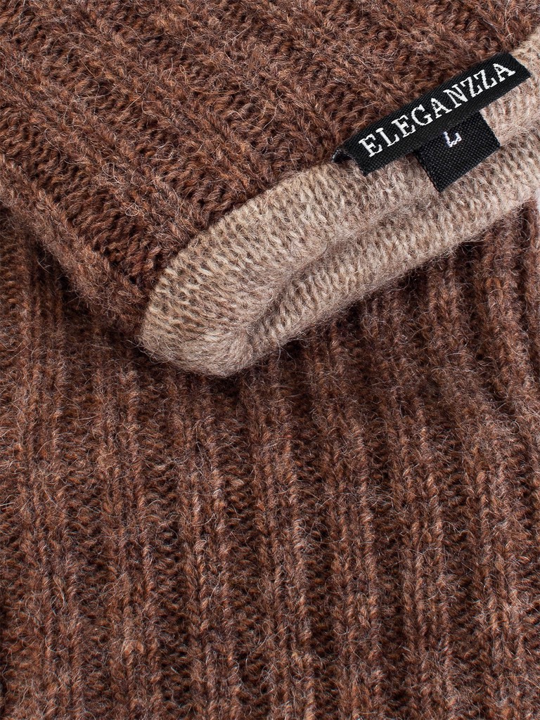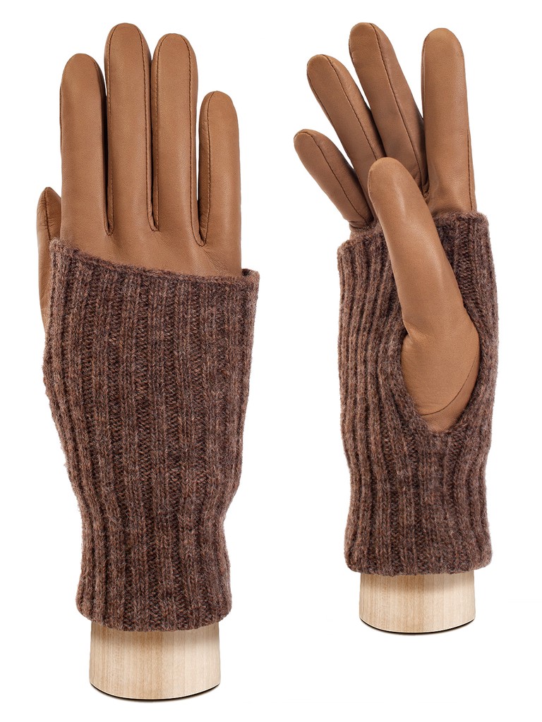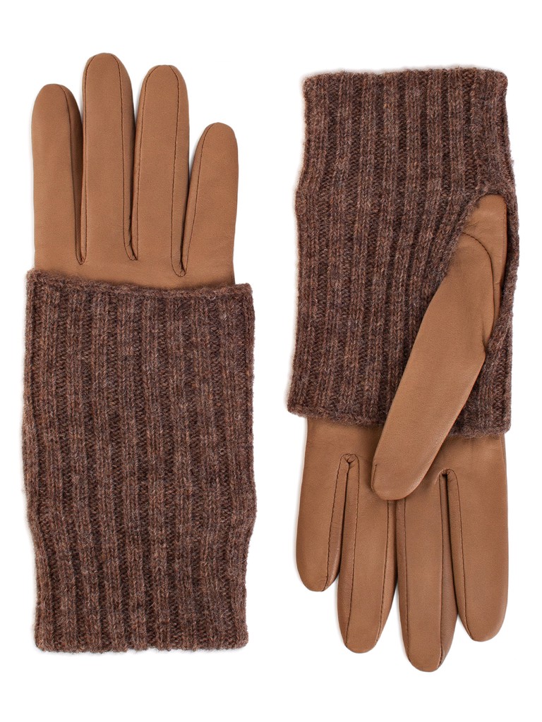 Перчатки женские торговой марки ELEGANZZA из натуральной итальянской кожи ягненка. Подкладка: 85% шерсть, 15% кашемир. Отделка - митенка из трикотажа рельефной вязки поверх кожаной перчатки. Благодаря этому модель особенно теплая и стильная. Длина манжеты от нижней точки большого пальца до края перчаток составляет - 6.5 см. Длина пальцев - средняя.