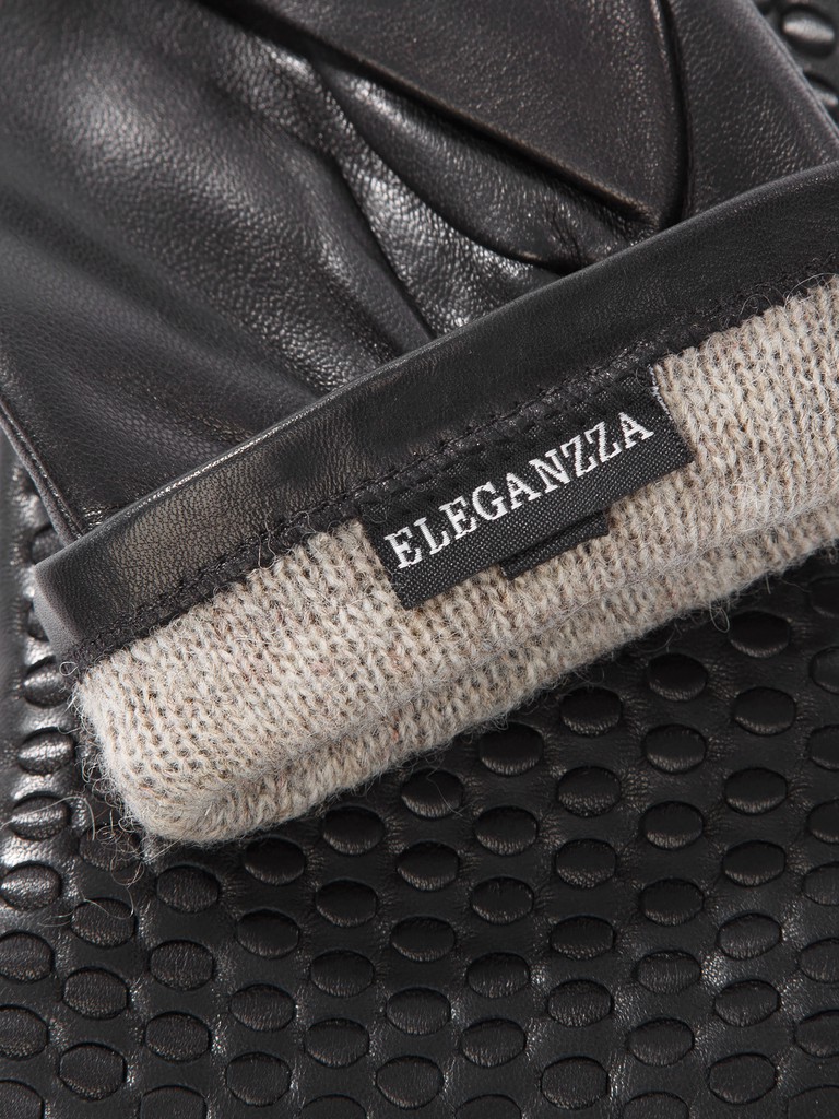 Перчатки женские торговой марки ELEGANZZA из натуральной кожи ягненка. Производство Китай. Подкладка: 100% шерсть. Отделка – продержка тонким кожаным шнурком, что образует впечатляющий узор по всей лицевой части перчатки. Деликатная ручная работа. Длина манжеты от нижней точки большого пальца до края перчаток - 6 см. Длина пальцев - средняя.