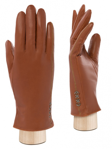 Перчатки женские торговой марки ELEGANZZA из натуральной кожи ягненка. Производство Италия. Подкладка: 85% шерсть + 15% кашемир. Отделка - декоративные швы на манжете, комбинирование контрастных кож.  Длина манжеты от нижней точки большого пальца до края перчаток - 15 см. Длина пальцев - средняя.