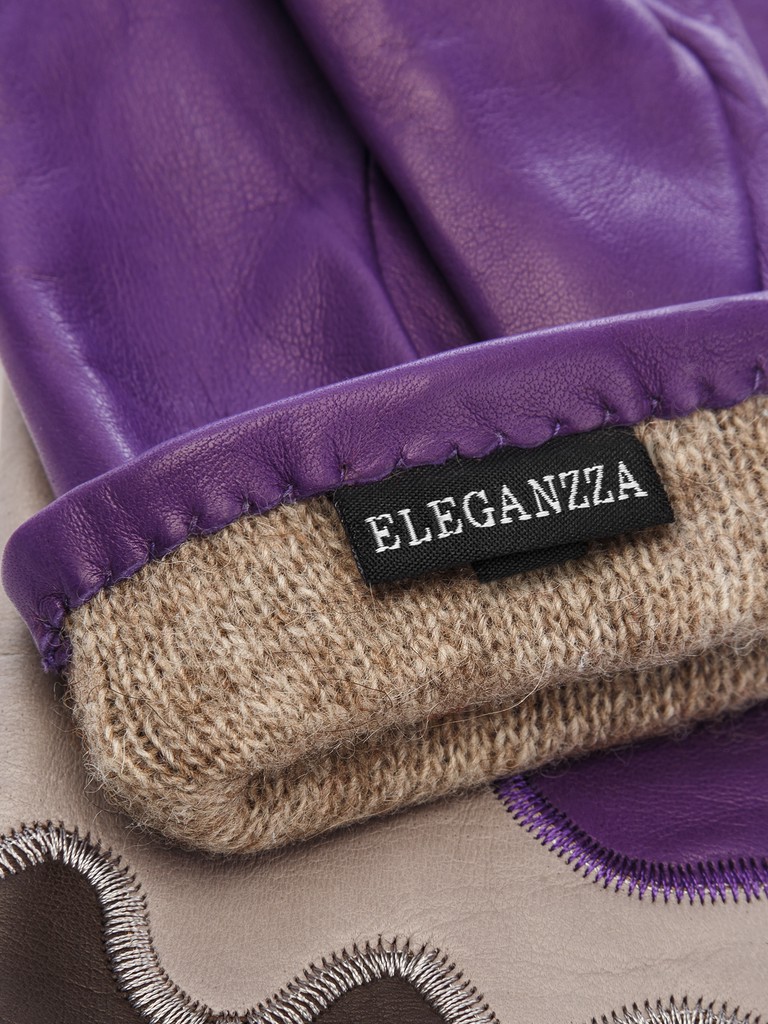 Перчатки женские торговой марки ELEGANZZA из натуральной кожи ягненка производства Италии. Подкладка: 85% шерсть, 15% кашемир. Отделка - контрастные декоративные вставки из натуральной кожи. Длина манжеты от нижней точки большого пальца до края перчаток составляет - 5 см. Длина пальцев - средняя.