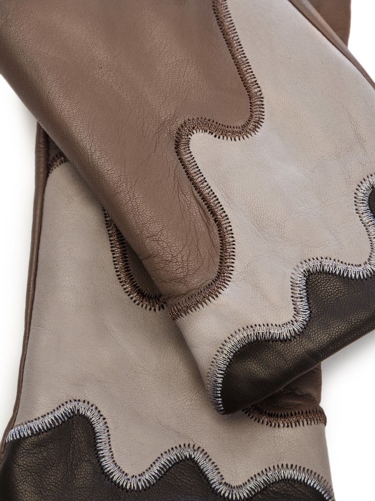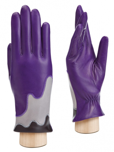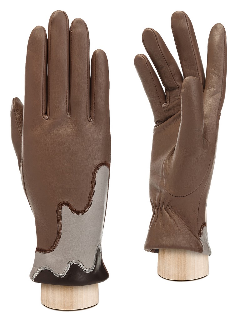 Перчатки женские торговой марки ELEGANZZA из натуральной кожи ягненка производства Италии. Подкладка: 85% шерсть, 15% кашемир. Отделка - контрастные декоративные вставки из натуральной кожи. Длина манжеты от нижней точки большого пальца до края перчаток составляет - 5 см. Длина пальцев - средняя.