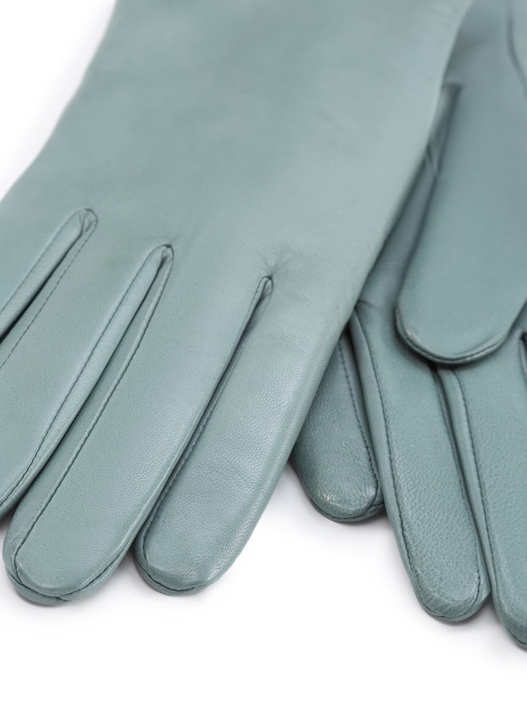 Перчатки женские торговой марки ELEGANZZA из натуральной кожи ягненка. Производство Филиппины. Подкладка: 50% шерсть + 50% кашемир. Длина манжеты от нижней точки большого пальца до края перчаток - 6.5 см. Длина пальцев - средняя.