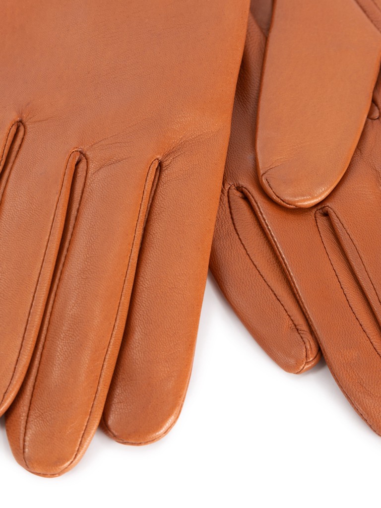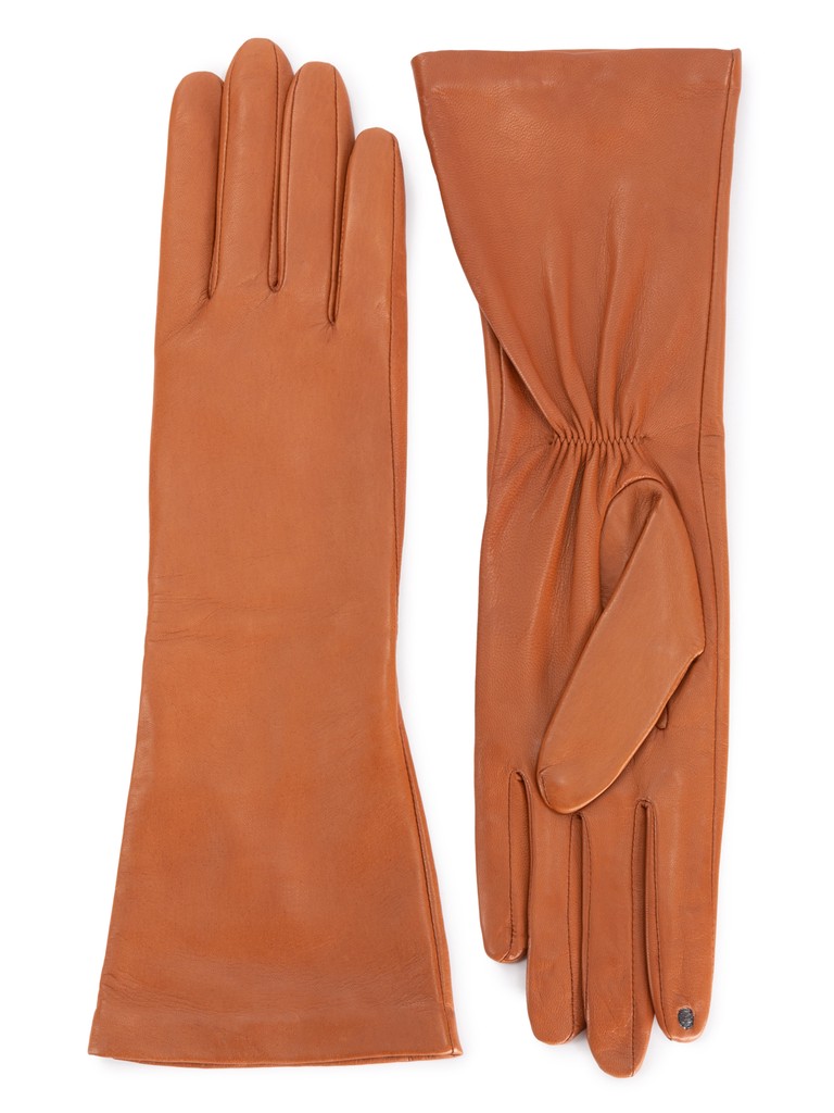 Перчатки торговой марки ELEGANZZA производства Филиппины выполнены из натуральной кожи ягненка. Подкладка: натуральный шелк. Данная модель позволяет работать с сенсорным экраном. Длина манжеты от нижней точки большого пальца до края перчаток - 15.2 см. Длина пальцев - средняя.