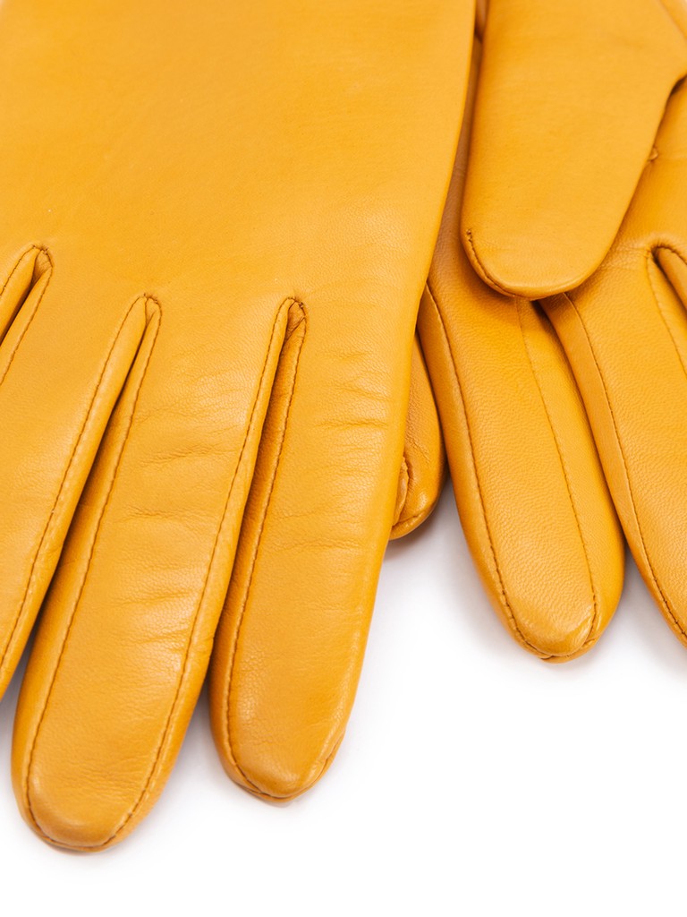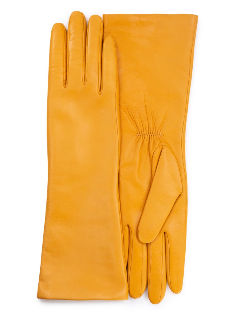Перчатки женские торговой марки ELEGANZZA из натуральной кожи ягненка. Производство Филиппины. Подкладка: 50% шерсть + 50% кашемир. Длина манжеты от нижней точки большого пальца до края перчаток - 15.2 см. Длина пальцев - средняя.