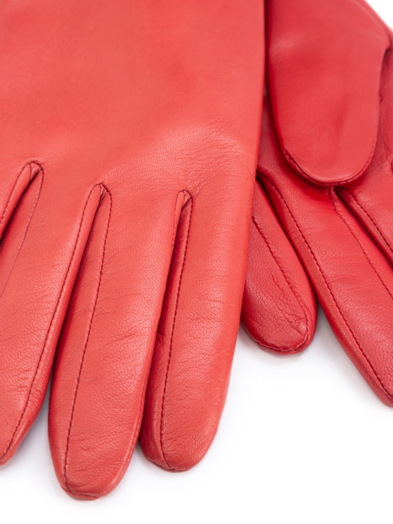 Перчатки женские торговой марки ELEGANZZA из натуральной кожи ягненка. Производство Филиппины. Подкладка: 50% шерсть + 50% кашемир. Длина манжеты от нижней точки большого пальца до края перчаток - 15.2 см. Длина пальцев - средняя.