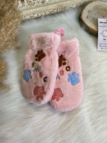 Теплые варежки с мехом, детские.