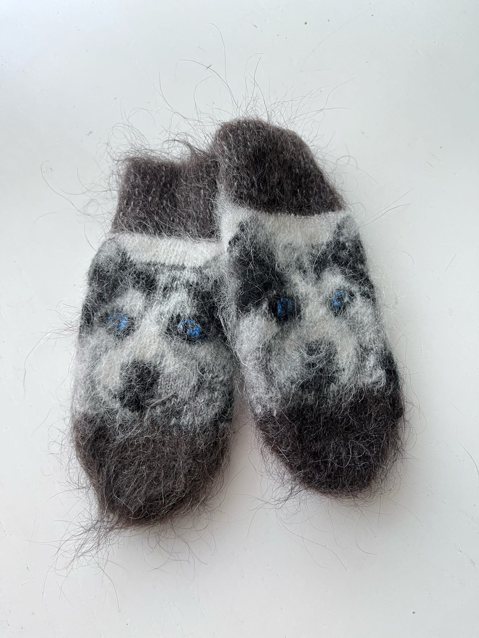 Варежки из ангоры детские "Волк"/с пухом/Л