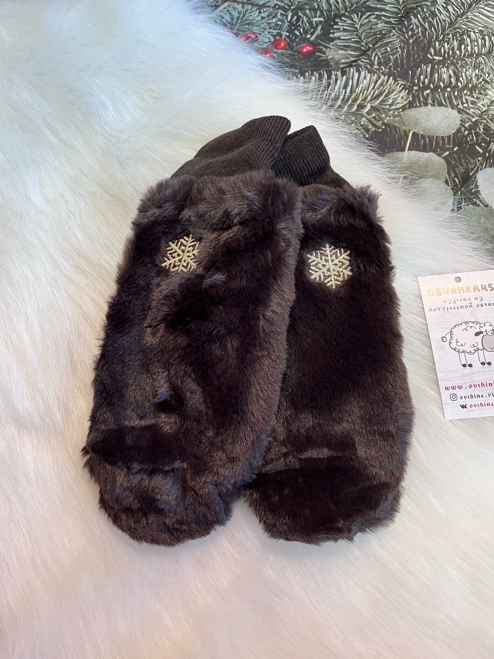 Варежки на подростка. Верх - мех эко, тыльная сторона - эко замша. Внутри мех.