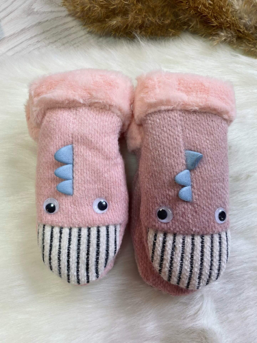 Варежки подростковые с принтом. Интересный дизайн "рубчик" и материал букле.