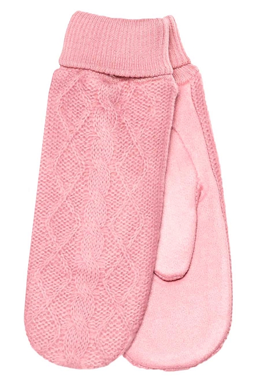 Варежки женские с отворотом (отворот разгибается), внутри подклад велсофт. Комбинированные: ладонь - иск.замша, сверху - вязаный узор.