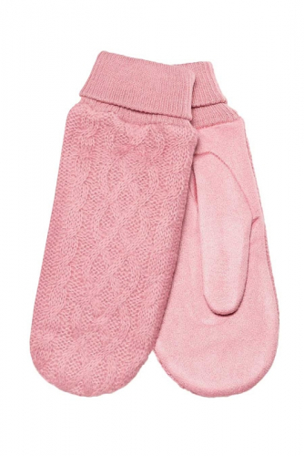 Варежки женские с отворотом (отворот разгибается), внутри подклад велсофт. Комбинированные: ладонь - иск.замша, сверху - вязаный узор.
