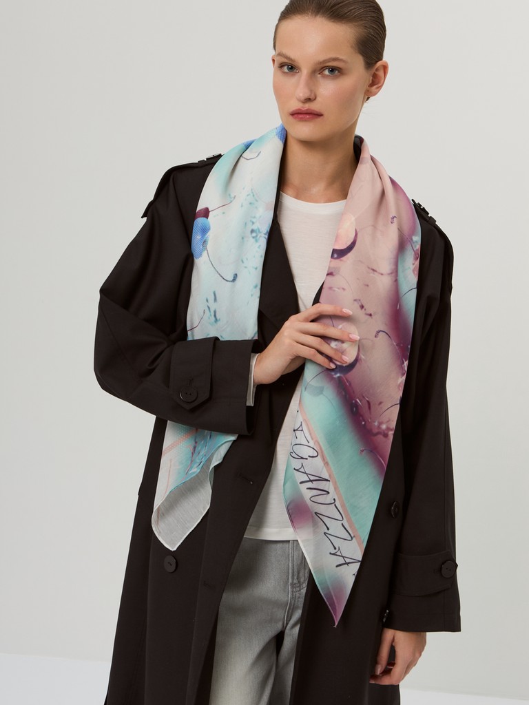 Платок женский торговой марки ELEGANZZA. Состав: 70% шелк, 30% хлопок. Тип подгибки: машинная подгибка. Размер: 110х110см.