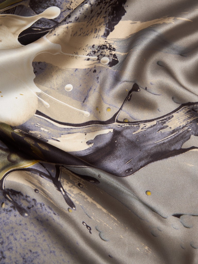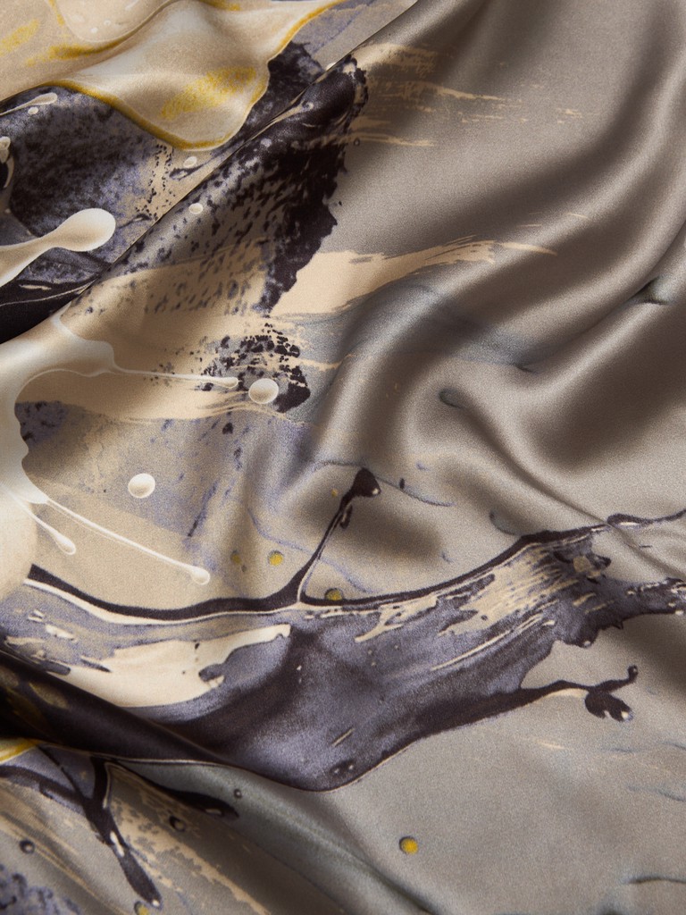 Платок женский торговой марки ELEGANZZA из натурального шелка. Яркие мазки, словно брызги воды, создают динамичный фон, сквозь который проступают нежные силуэты цветочных бутонов. Ручная подгибка на лицевую сторону.