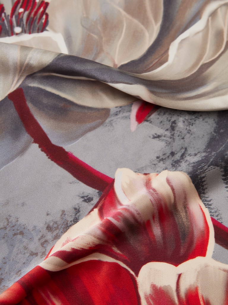 Платок женский торговой марки ELEGANZZA из натурального шелка, дополненный авторским принтом с изображением ярких раскидистых маков. Деликатная ручная работа - подгибка на лицевую сторону. В пару к платку предлагается зонт-автомат в том же дизайне.