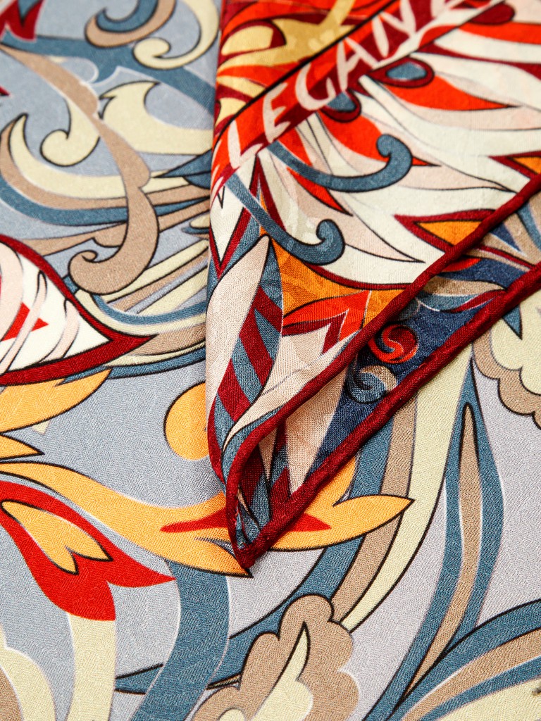 Платок женский торговой марки ELEGANZZA. Состав: 100% шелк, жаккард, повышенной плотности (13mm). Тип подгибки: ручная подгибка на лицевую сторону. Размер: 90х90см.