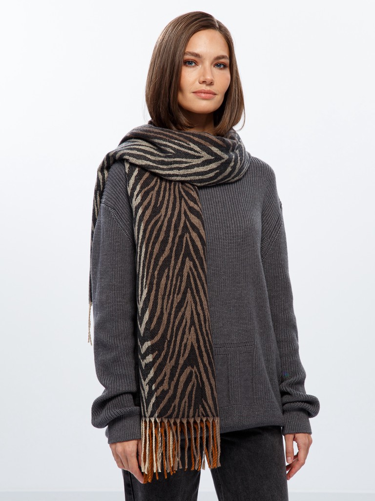 Палантин женский торговой марки Labbra. Состав: 50% шерсть, 20% хлопок, 30% акрил. Тип подгибки: фабричная закрепка, кисти. Размер: 65х180см.