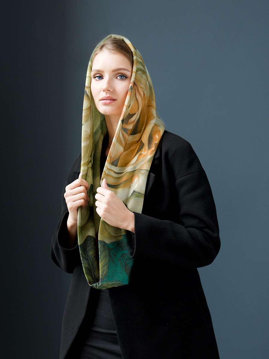 Особенности изделия: сложный принт/круговой шарф/двухслойный