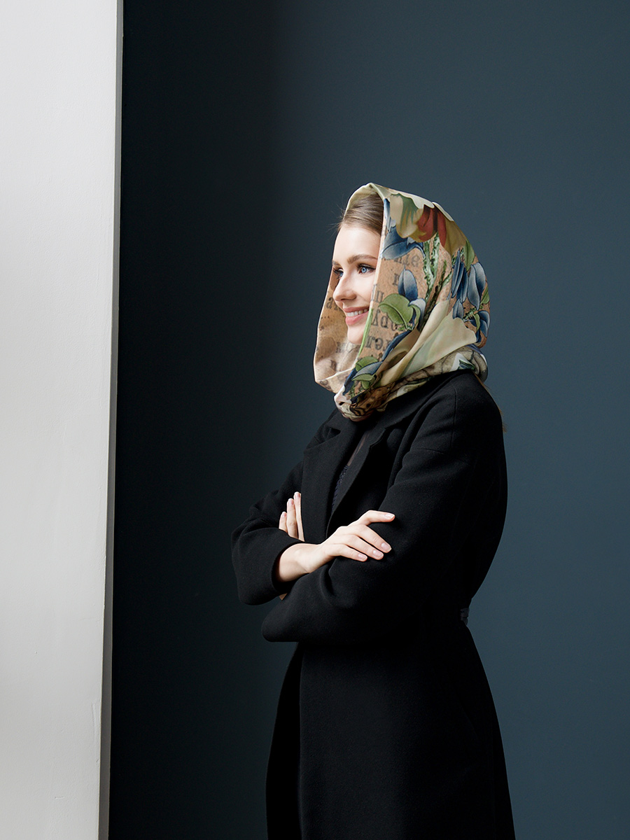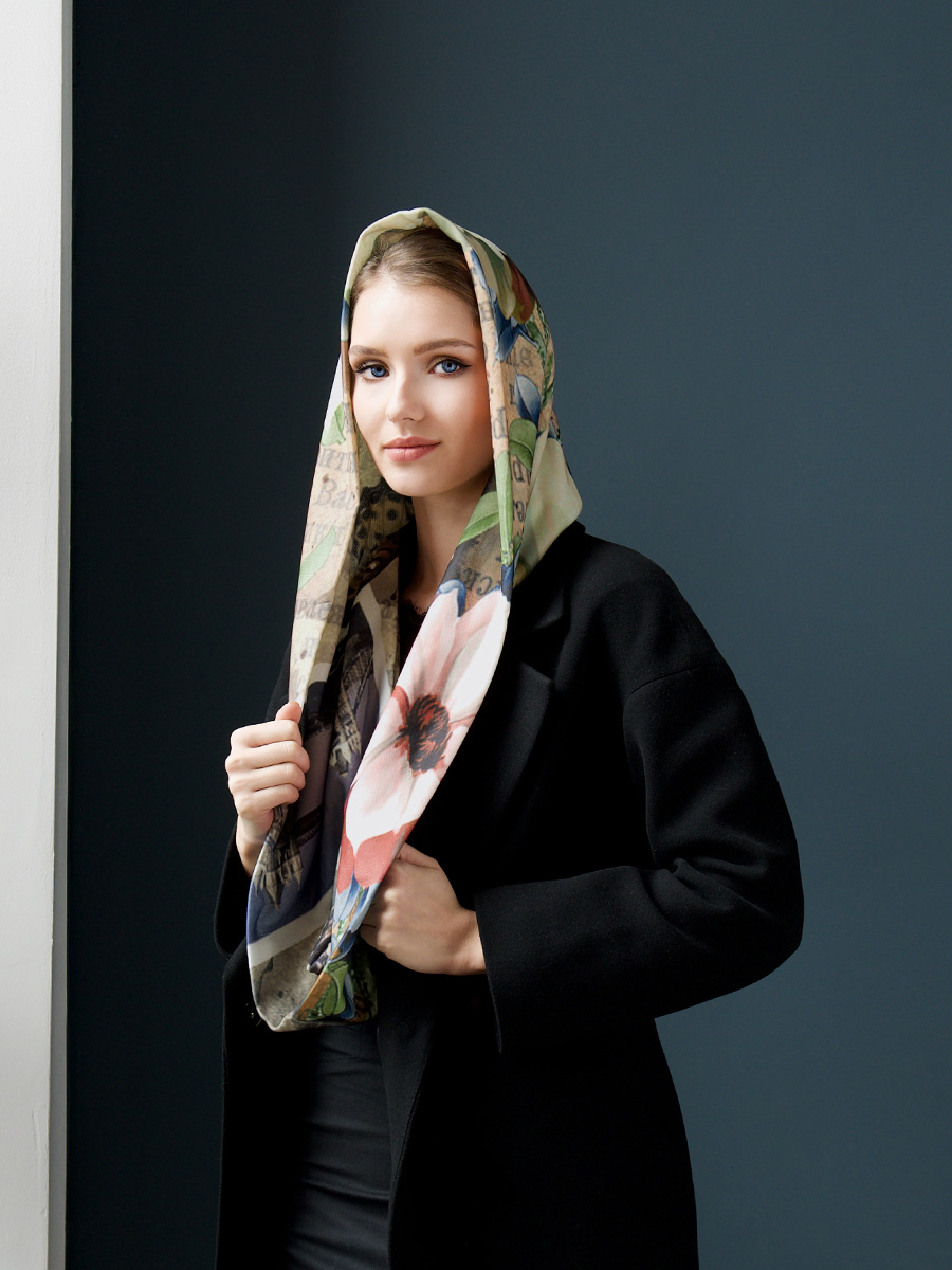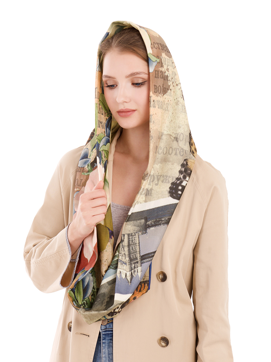 Особенности изделия: сложный принт/круговой шарф/двухслойный