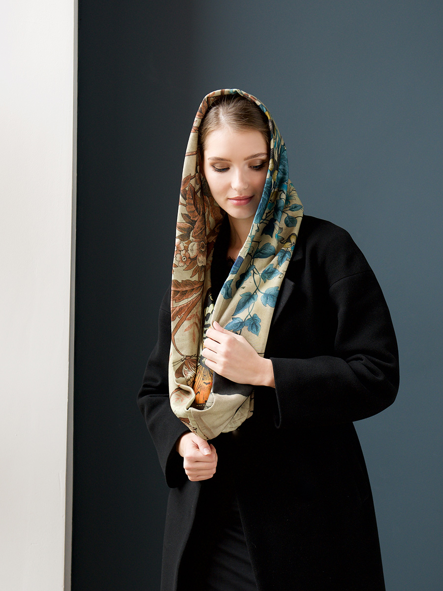 Особенности изделия: сложный принт/круговой шарф/двухслойный