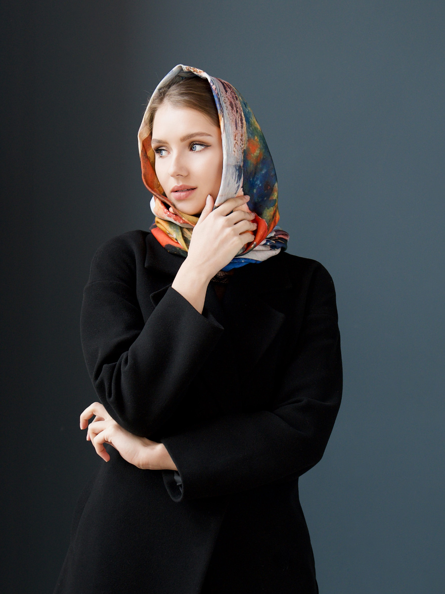 Особенности изделия: сложный принт/круговой шарф/двухслойный