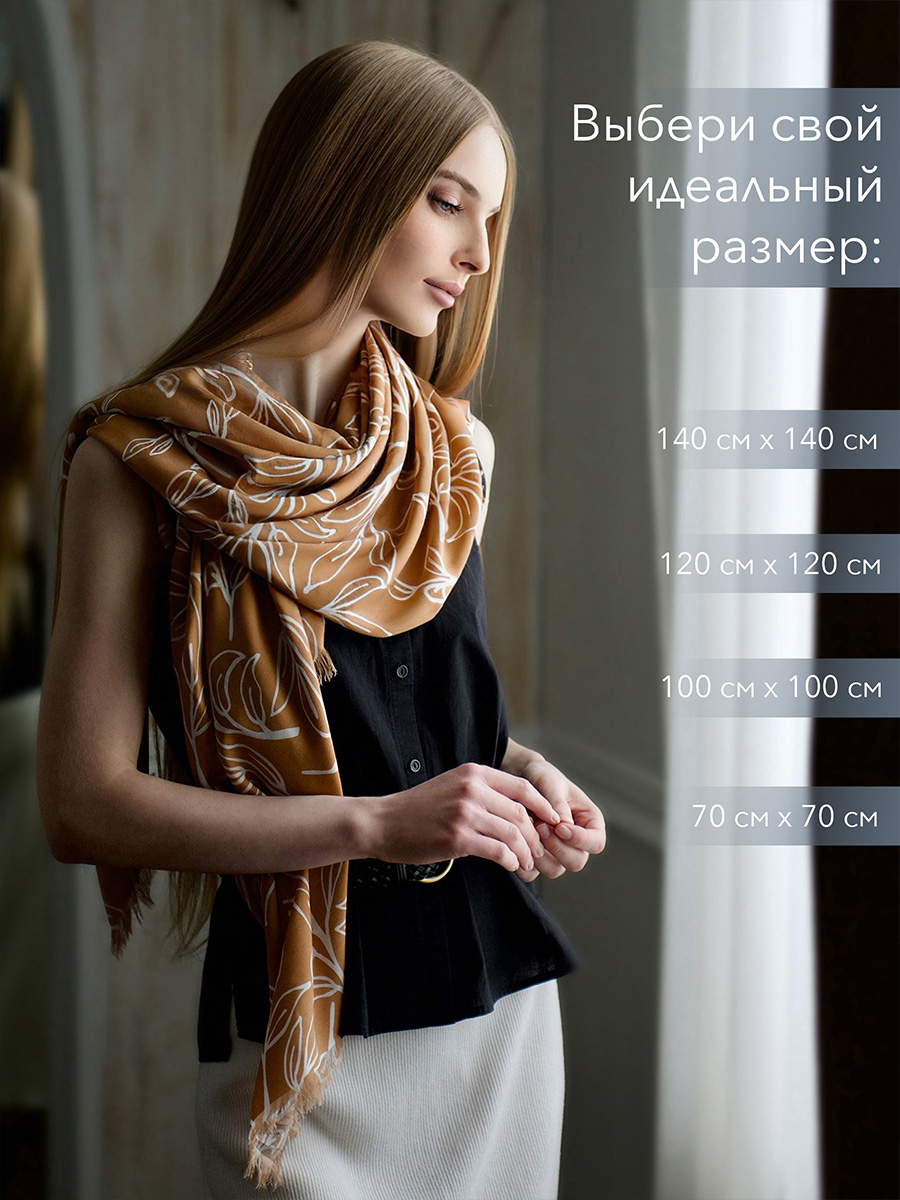 Оригинальный платок из качественного хлопка и вискозы, нежный и мягкий на ощупь, гармонично подойдет для любого образа, а необычный принт, изображающий цветочный орнамент, придаст обворожительности и притягательности вашему наряду. Большой размер платка позволяет завязывать его множеством вариантов, что делает вас неповторимой и привлекательной, а легкий струящийся материал будет ежедневно дарить ощущение комфорта и уюта.