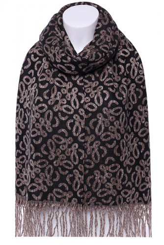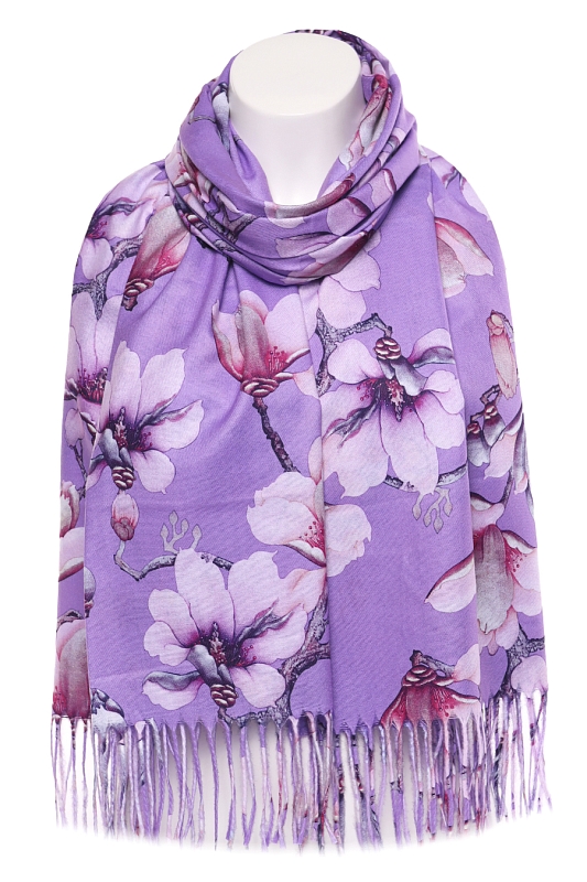 Мягкий, плотный палантин. Одна сторона - крупные цветы, другая - мелкие цветы. Края палантина заканчиваются кромкой, концы - бахрома.