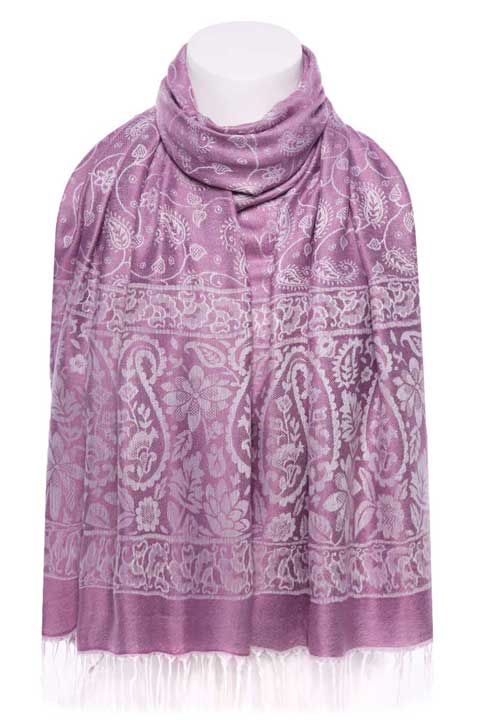 Жаккардовый, легкий палантин. Кромки палантина обработаны швом в подгибку, низ - бахрома.