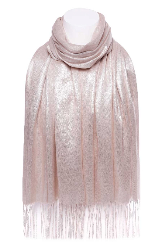 Тонкий палантин с добавлением серебрянной нити люрекс. Края палантина - кромка, концы - бахрома.