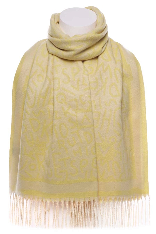 Теплый, мягкий палантин. На двух противоположных краях кисти, два других заканчиваются кромкой.