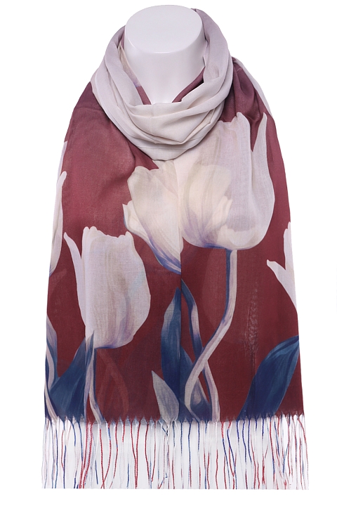 Мягкий, тонкий палантин. Края палантина заканчиваются кромкой, концы - бахрома.
