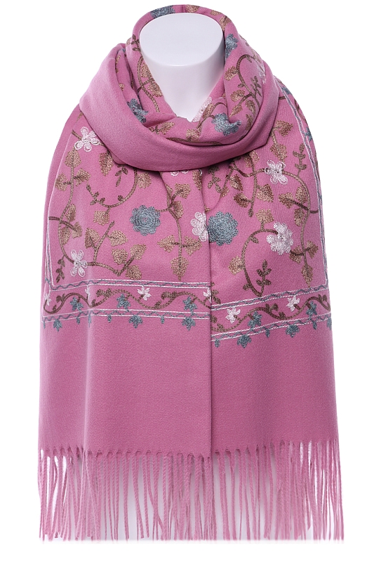 Однотонный, мягкий, теплый палантин с нанесением вышивки. Края палантина заканчиваются кромкой, концы - бахрома.