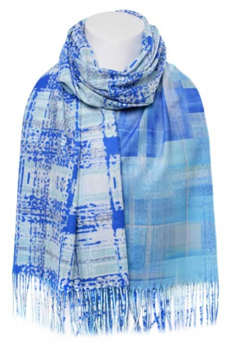 Палантин мягкий, плотный двухсторонний. Одна сторона - абстракция, другая сторона - разводы. Края палантина заканчиваются кромкой, концы - бахрома.