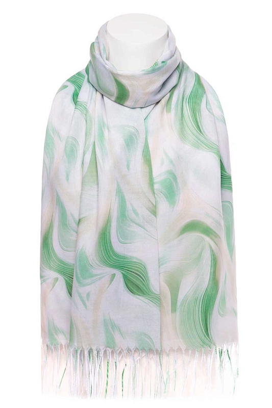 Мягкий, тонкий палантин. Края палантина заканчиваются кромкой, концы - бахрома.