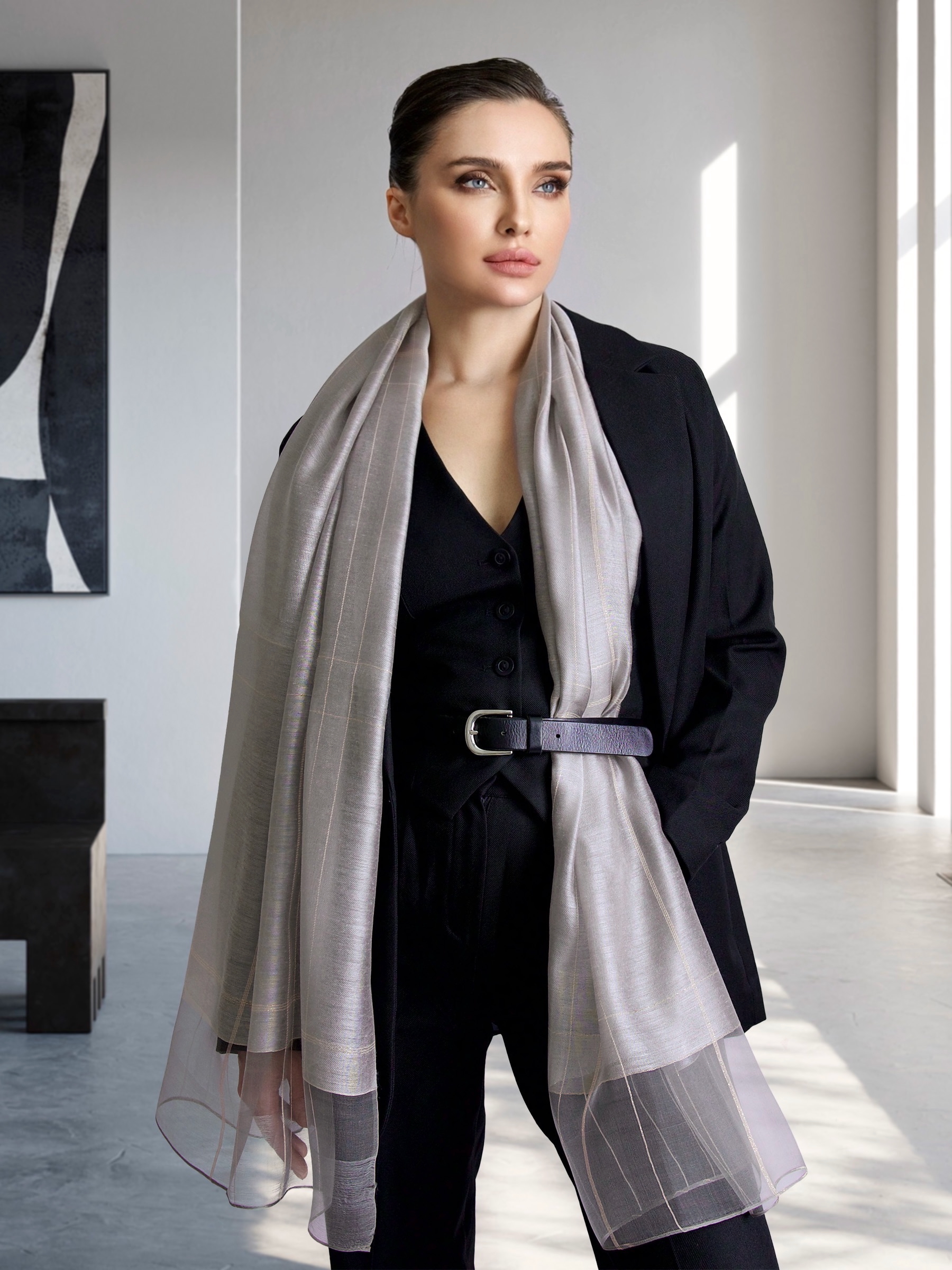 Легкий изящный шелковый палантин