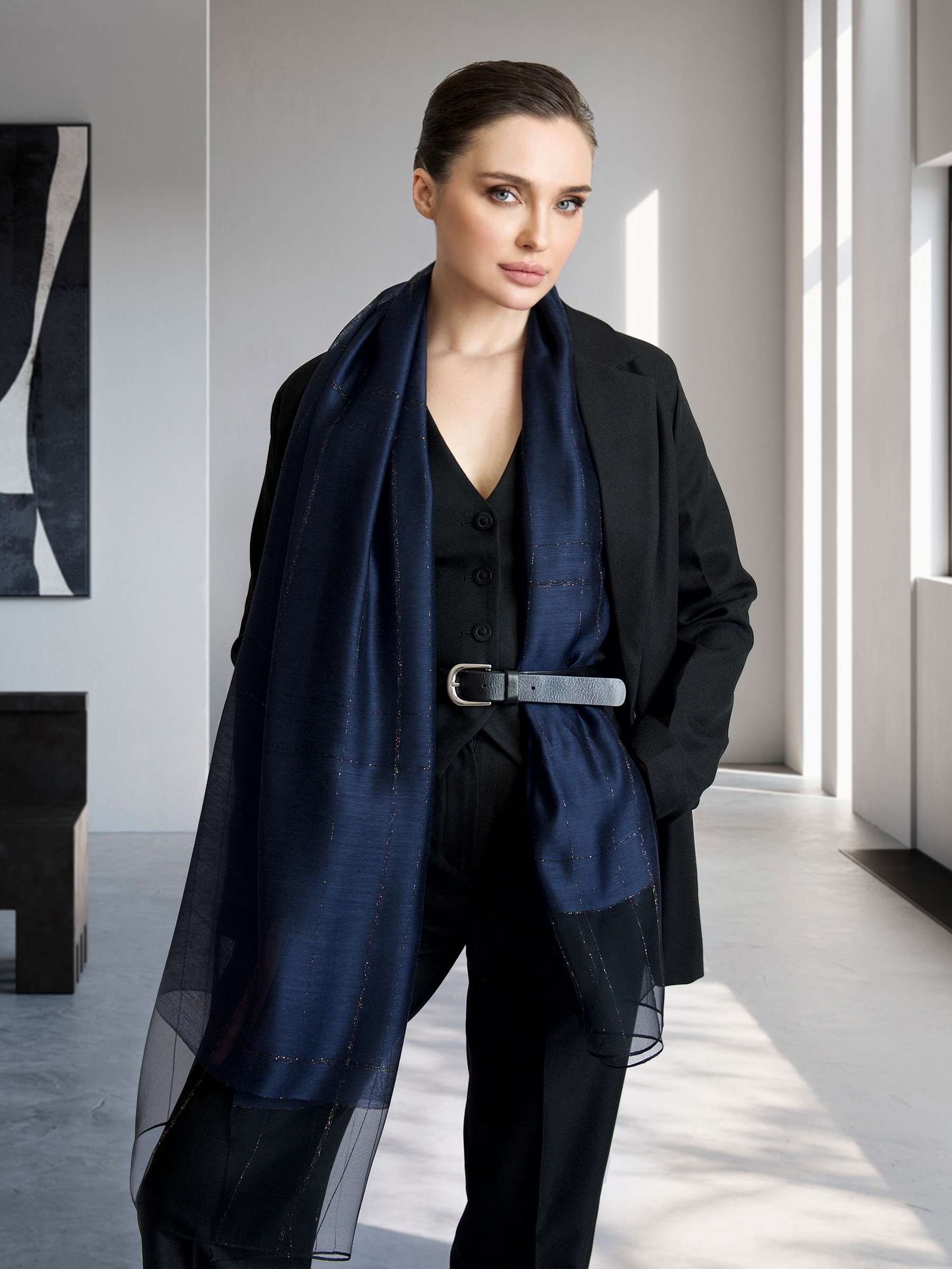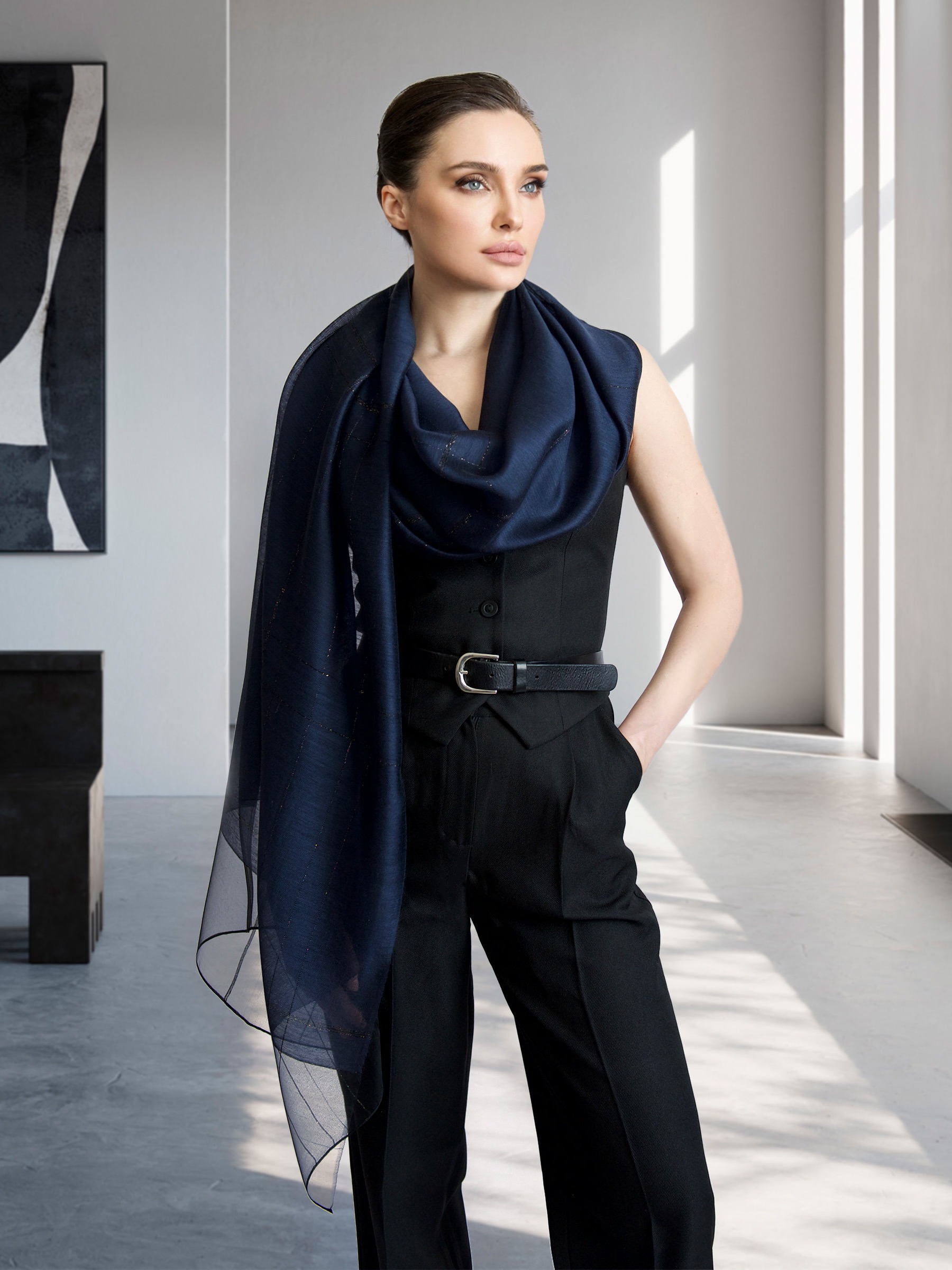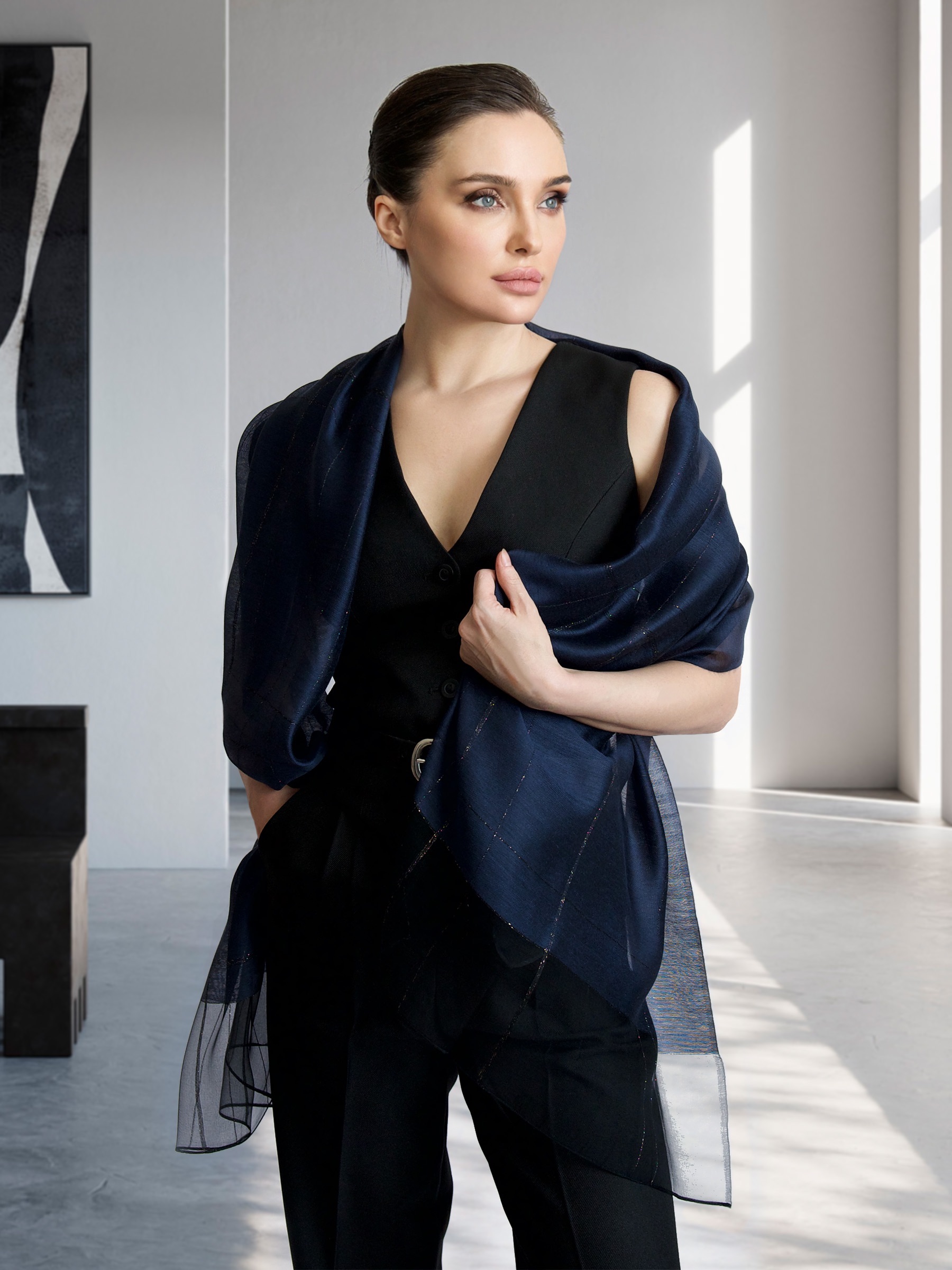Легкий изящный шелковый палантин