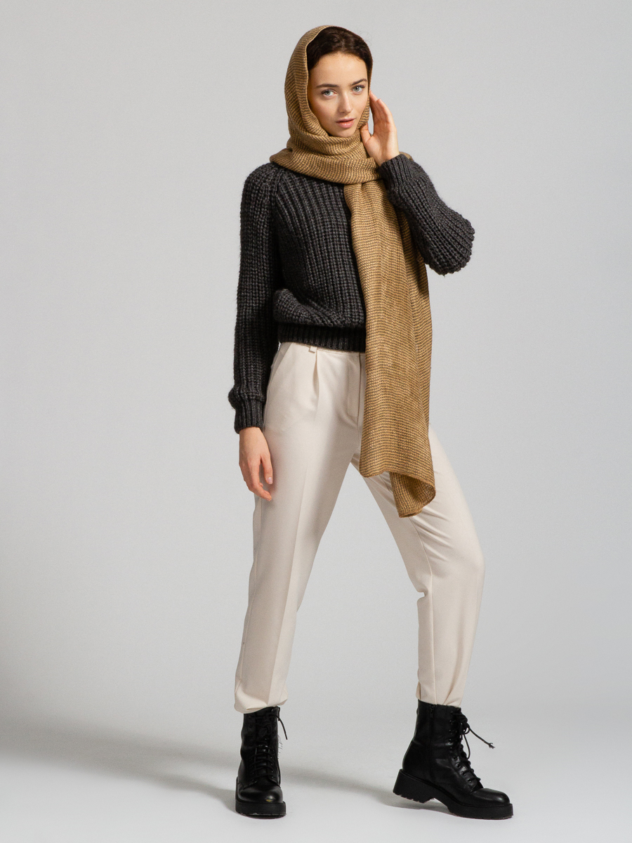 Большой, красивый  палантин, выполненный из мягкого трикотажного полотна неплотной вязки. Только ручная стирка. Сушить в горизонтальном, расправленном виде. Шерсть 45% Акрил 55%