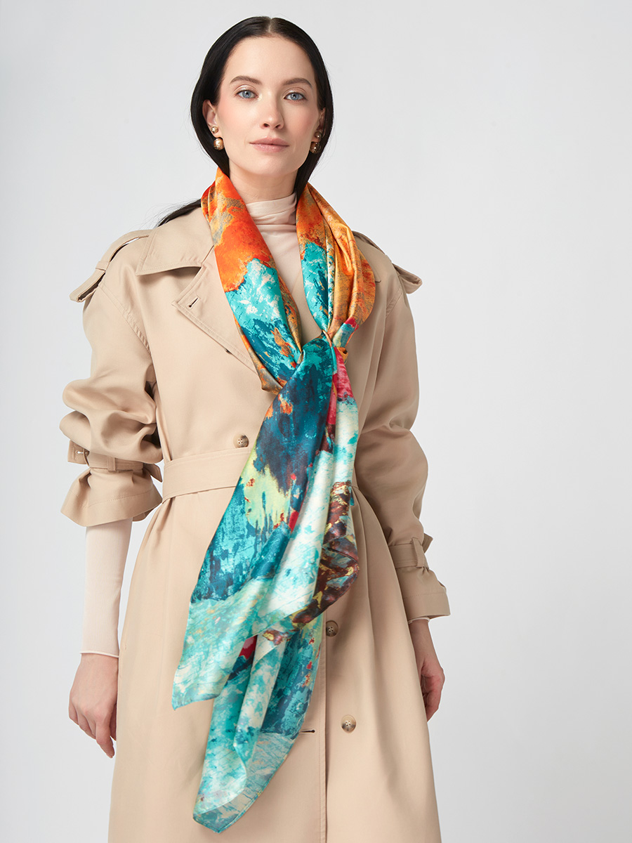 Большой, мягкий, тонкий и очень нежный палантин с рисунком. Только ручная стирка. 45% полиэстер, 35% вискоза, 20% шелк