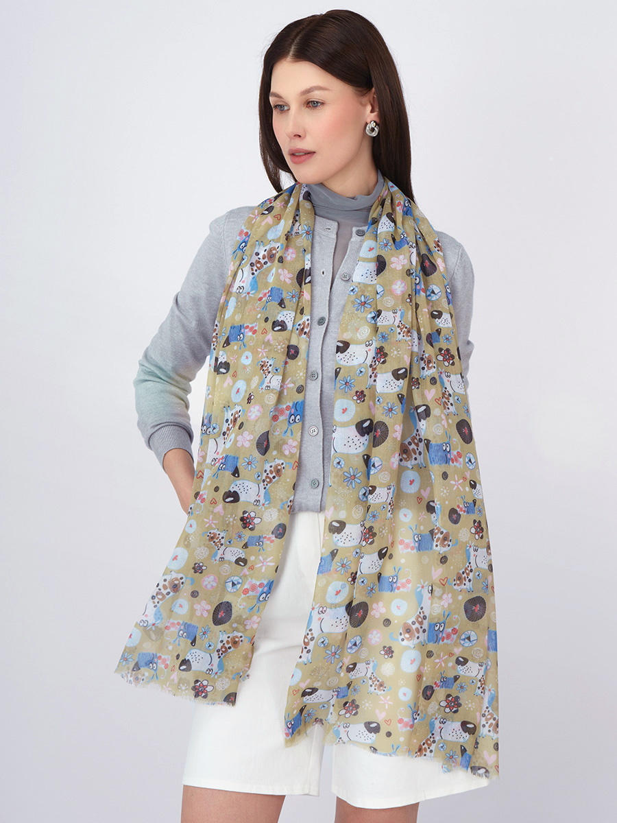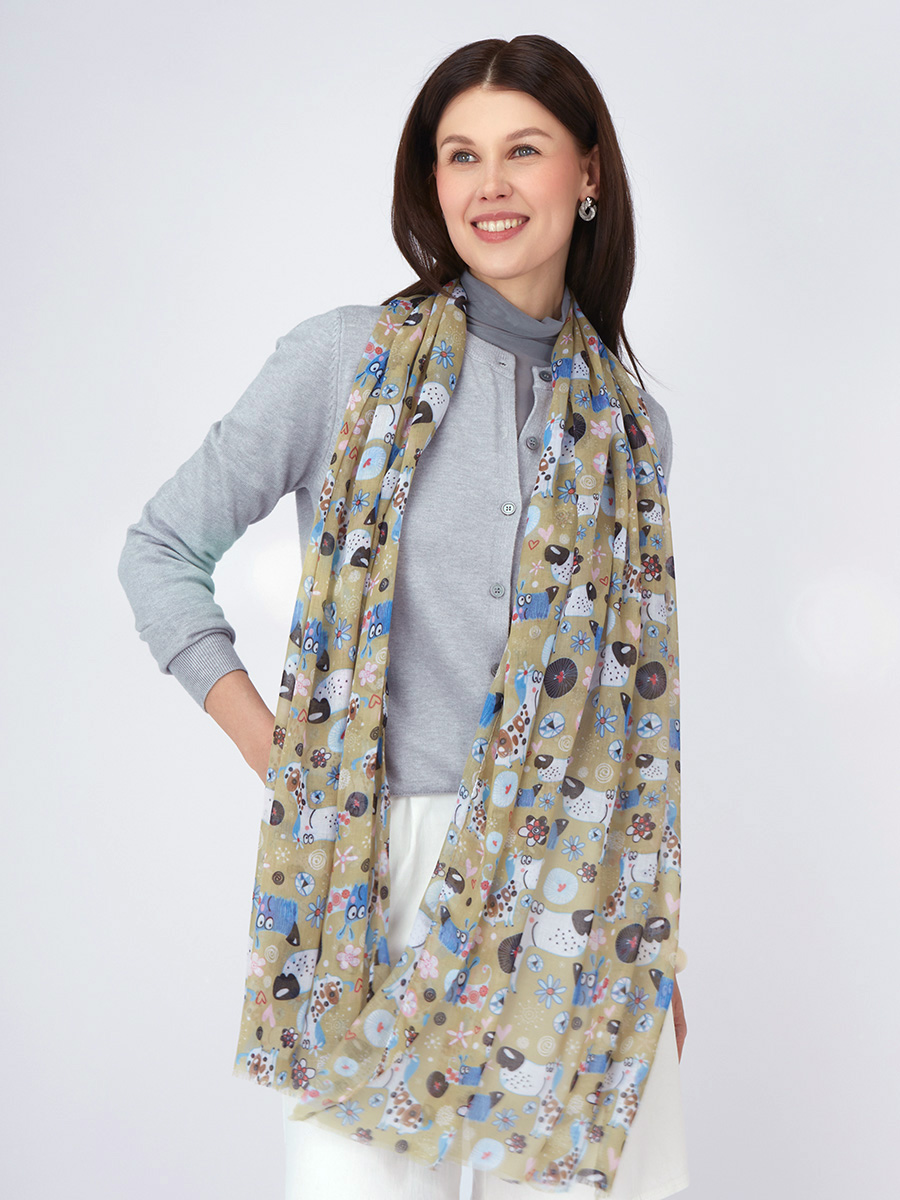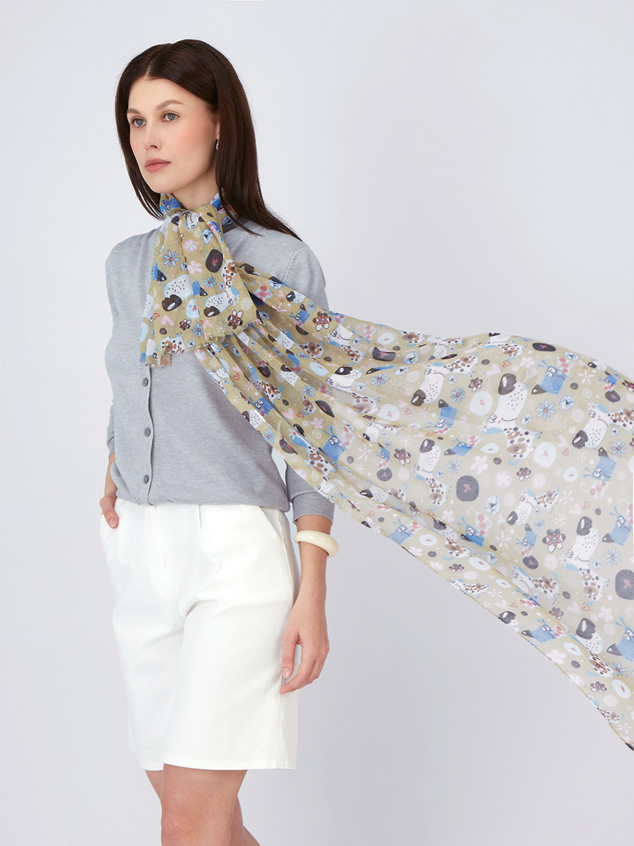 Большой, мягкий, тонкий и очень нежный палантин с рисунком в стиле арт-деко. Только ручная стирка. 45% полиэстер, 35% вискоза, 20% шелк